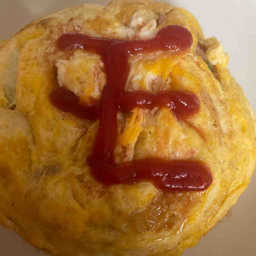 お誕生日ということでママがオムライスを作ってくれました。弟が「モ」ってケチャップでやってくれた